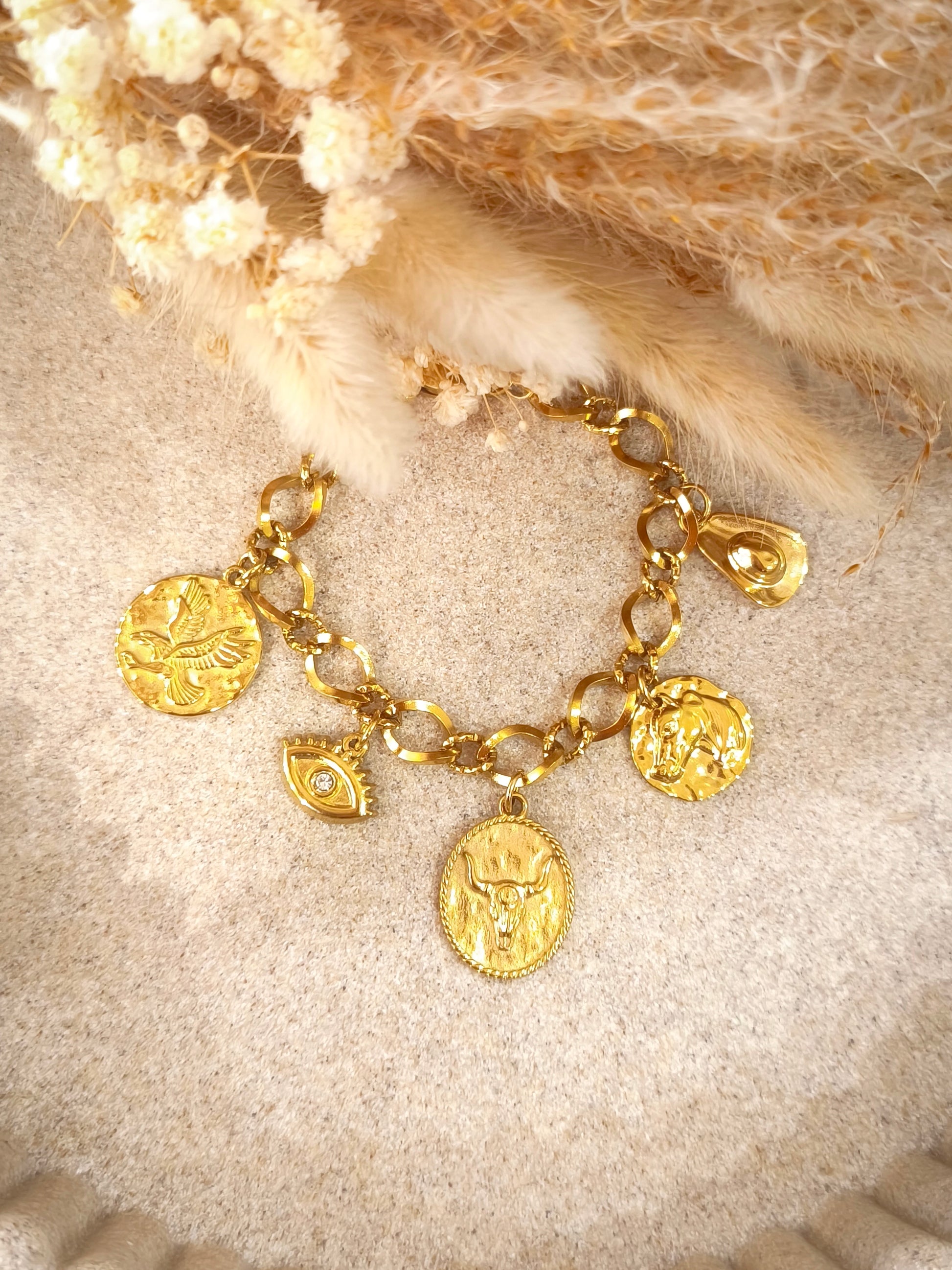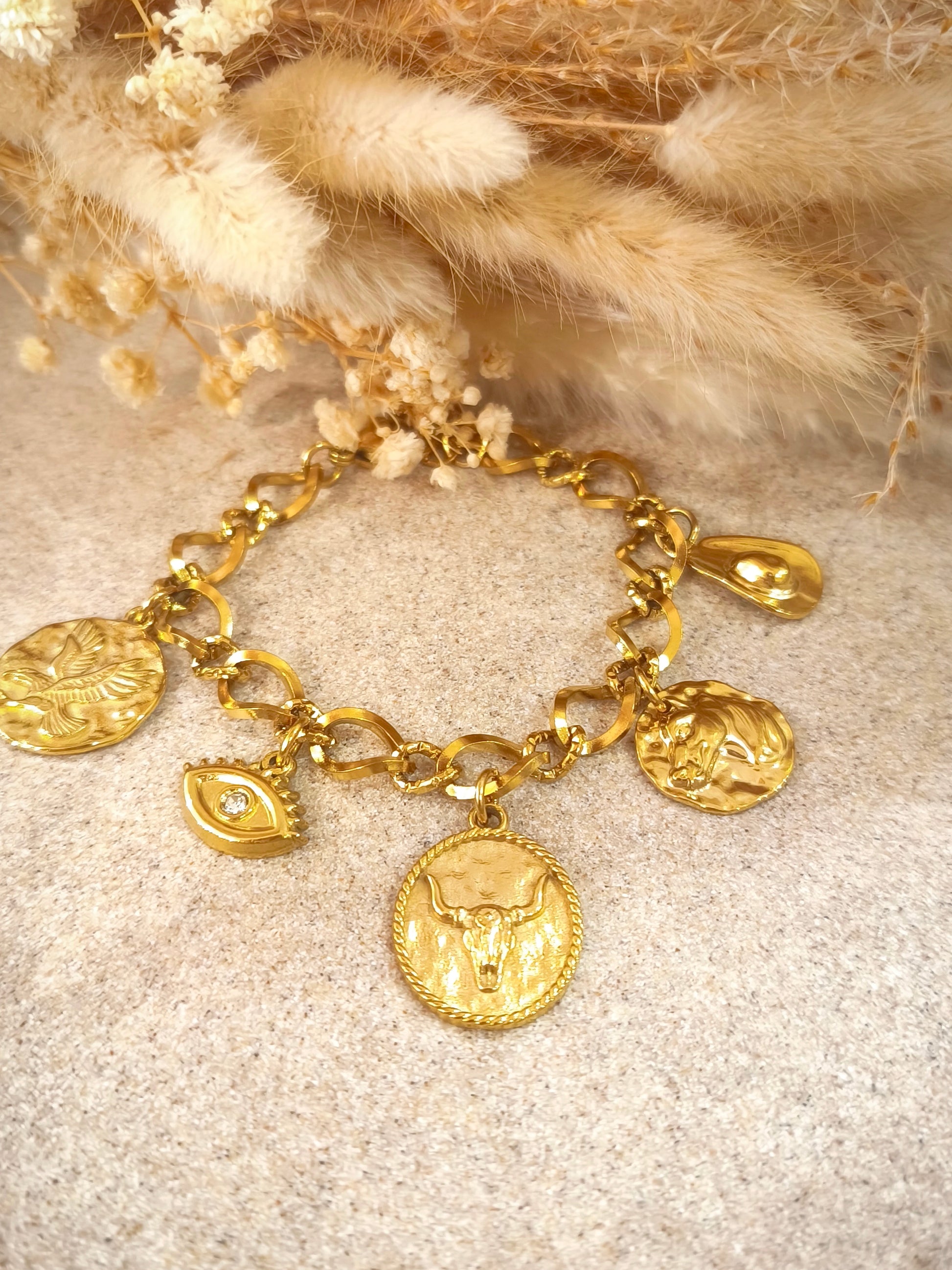 Le bracelet à breloques Texas en acier inoxydable mêle douceur et élégance, une pièce raffinée qui apporte une touche féminine à tous vos looks