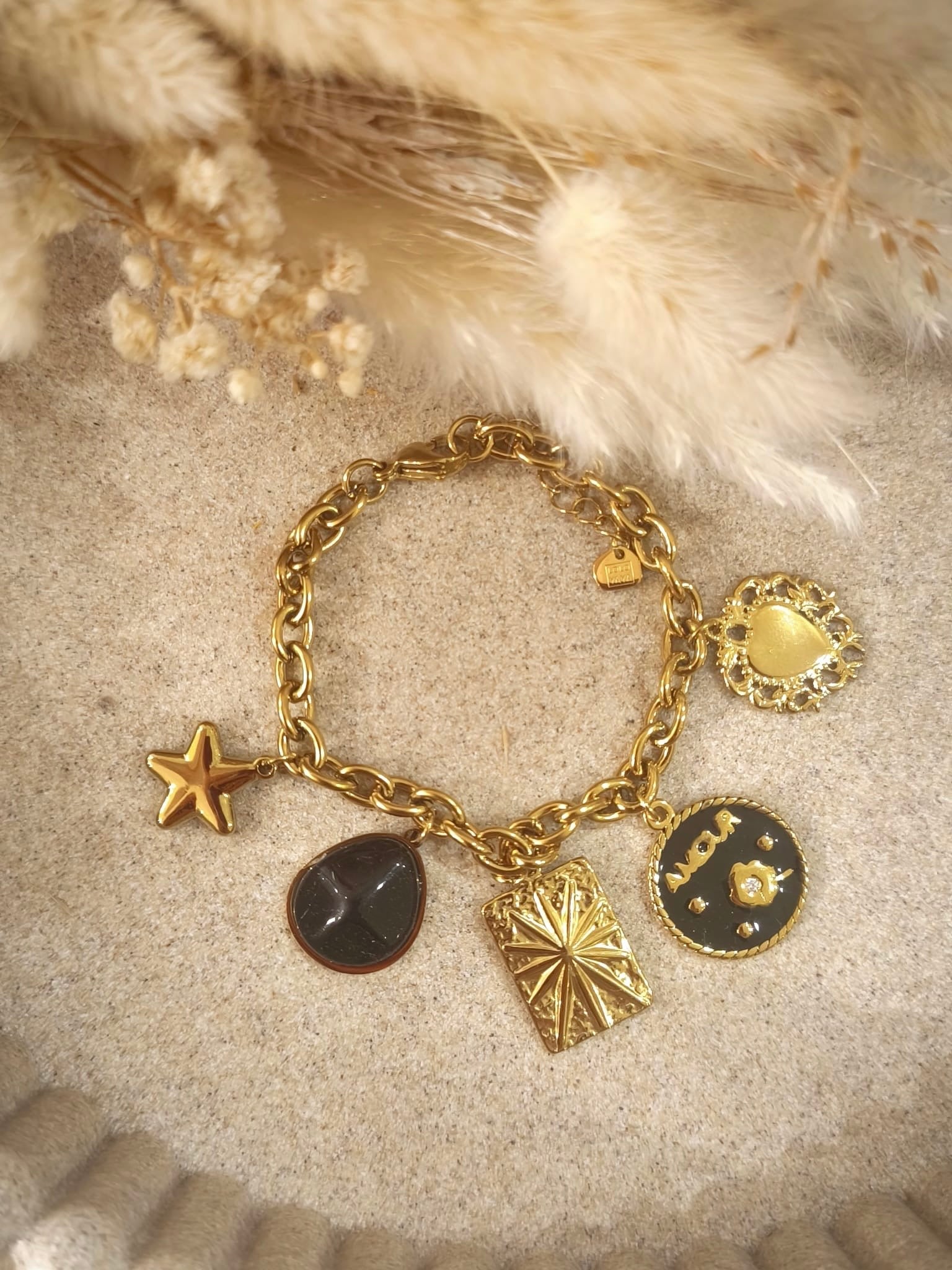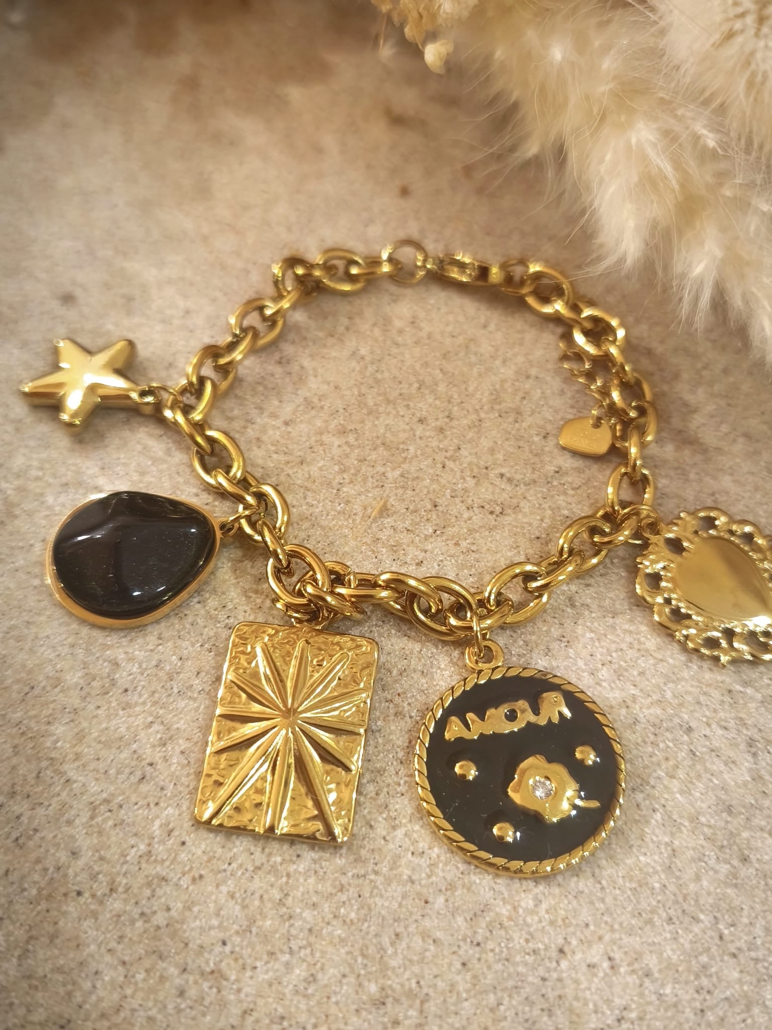 Bracelet Mateo à breloques en acier inoxydable, élégant et durable, idéal pour un style moderne et raffiné.