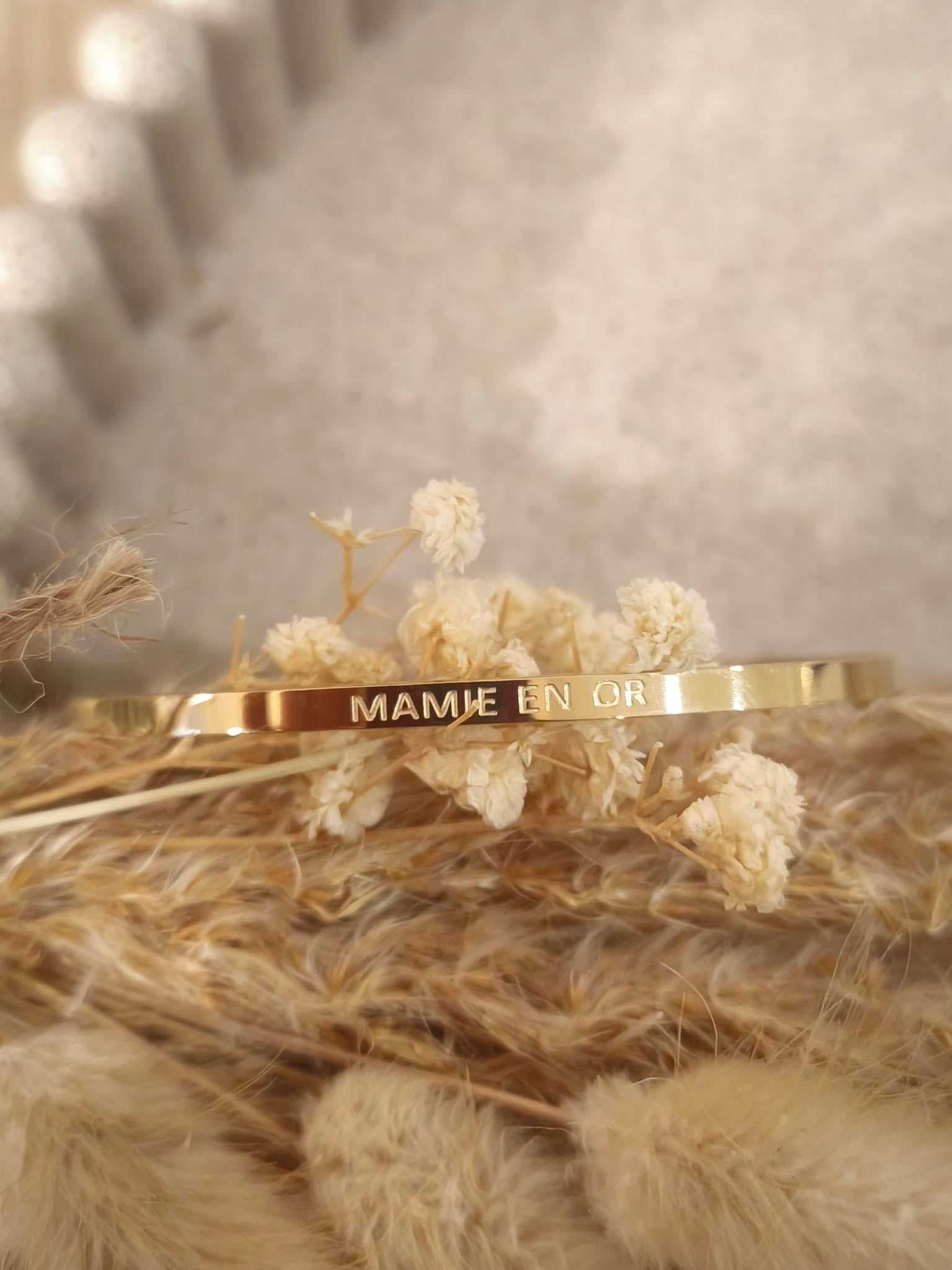 Jonc Mamie en Or en acier inoxydable, tendre et élégant, parfait pour honorer un amour généreux avec une touche brillante et intemporelle.