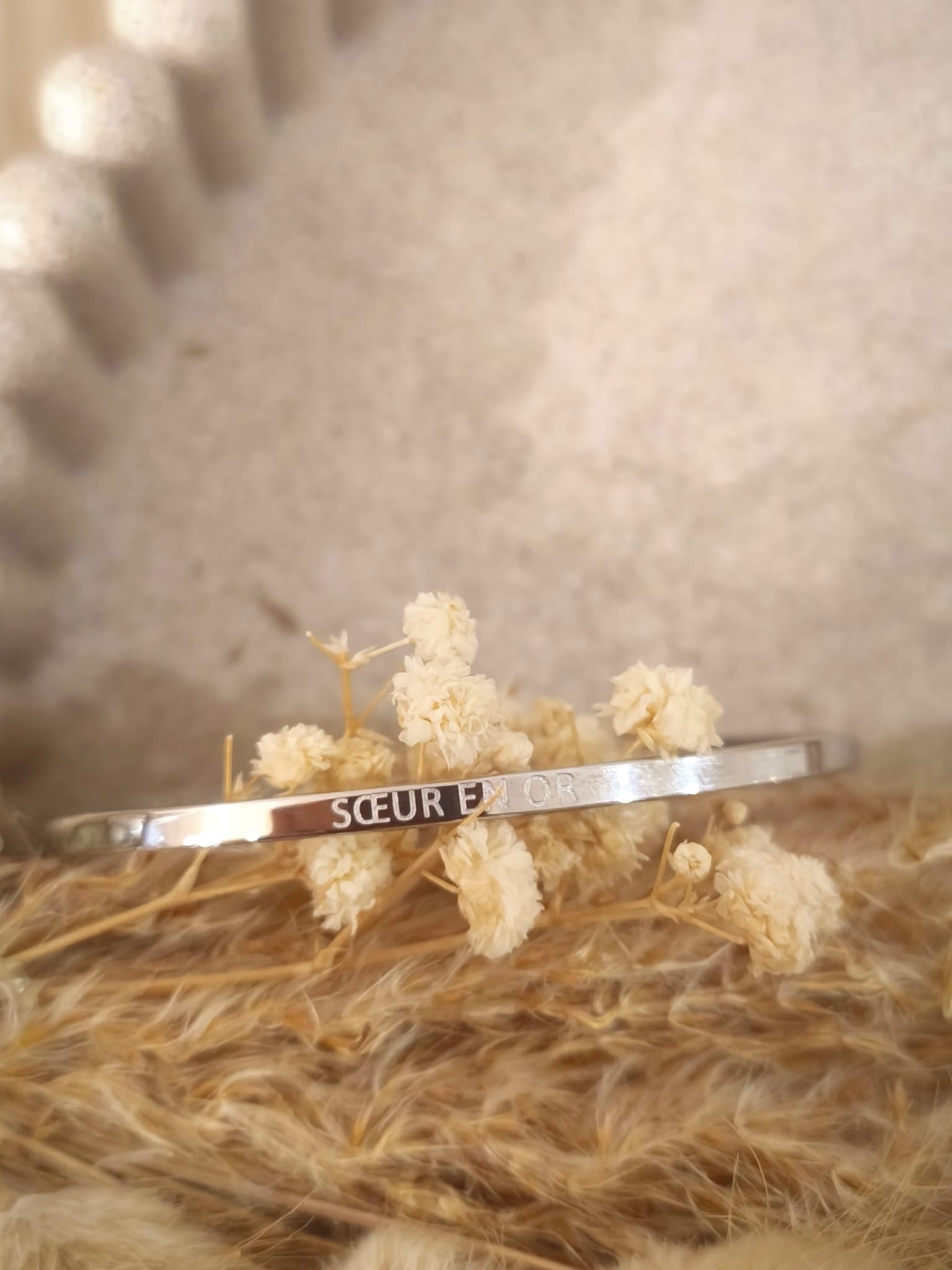 Jonc Sœur en or, en acier inoxydable, élégant et durable, symbole d’un lien fort et complice, parfait pour sublimer chaque moment partagé.